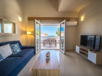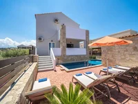 Cada vila tiene 3 dormitorios y 3 baños, que en total asciende a 8 camas, divididos en 3 plantas. Todo el complejo se encuentra a pocos segundos de la famosa playa de Platanias, donde los residentes de cada villa tienen 4 tumbonas y 2 sombrillas gratis.
