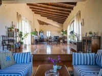 Además hay 2 estudios separados y un apartamento extra. El primero está en el nivel inferior de la propiedad y tiene el tamaño de 42m2. Hay otro en la planta baja (45m2) y el tercero en el nivel superior (33m2). Son autocontenidos, totalmente equipados, amueblados y decorados en el estilo tradicional de Cretan. El estudio en el nivel superior tiene una gran terraza, que cuenta con una lavadero tradicional, una gran mesa de madera y sillas, y un banco de estar integrado.
