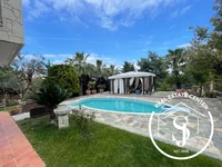 This stunning complex of villas is situated in an enviable position, overlooking a very popular resort in Halkidiki with magnificent sea views in Paliouri. The properties offer the highest caliber of accommodation with an aesthetic design in stone, functional style, and top-quality construction with a total of 98 sq meters on 2 floors. All of the properties have lovely private landscaped gardens, a dedicated parking area, gazebo, and a private swimming pool. The home offers 3 bedrooms, 2 bathrooms, a chef-style kitchen, and an open-concept lounge with a walk-out to the private manicured garden of 750 meters. Aesthetically furnished and turn key for the new owner. The home benefits from views and is surrounded by nature. Ideal for rental income!! Call to view today we will be happy to privately showcase this home!