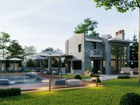 There is a private garden 1050 sq. meters with a swimming pool 75 sq. meters and barbeque. There is an open view from the villa.