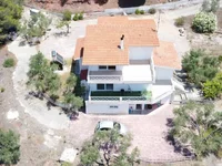 - Upstairs, there are two bedrooms and a spacious bathroom with bathtub. The large terrace on this level offers even more beautiful views of the sea and green forest. The house has electric shutters for convenience and added security.