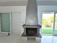 - On the raised ground floor, there is a comfortable living room with a fireplace, ideal for cool evenings. There is also a separate kitchen, bathroom with hydromassage shower and a small room that could be used as a guest bedroom or home office. A terrace off the living room offers stunning panoramic views of the sea and the mountains in the background.