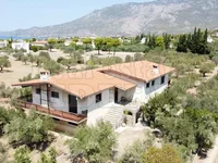 Detached house 180 sq.m. and 180 sq.m. semi-basement in a 7 acre estate. The house is located in the area where the sports camps sport camp and is about 3 km from the center and the beach of Loutraki and less than an hour by car from the center of Athens (80 km), and the international airport 'El. Venizelos '. It has four large bedrooms, bathroom, toilet, large perimeter terrace. Huge open spaces, quiet, unlimited autonomy, unique view, privileged location, many infrastructures, 150 olive trees, direct access to the Athens-Corinth-Patras national roads and the suburban road.