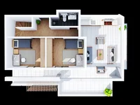 4a planta: 2 habitaciones y baño, azotea con pérgola fija, zona de barbacoa con lavabo
