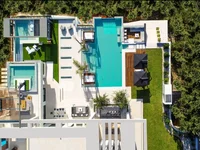 La villa combina estética moderna con plena funcionalidad, ofreciendo vistas panorámicas al mar, las Montañas Blancas y el exuberante paisaje de Apokoronas. Las paredes de cristal deslizantes conectan perfectamente los interiores con amplias terrazas, proporcionando luz, aire y libertad en cada espacio.