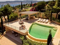 Nuevamente, elegantemente, casa construida de nueve dormitorios en total - cinco en casa principal más tres en casa de huéspedes & uno en Guest Garden Suite - está rodeado de un hermoso jardín con piscina y vistas panorámicas al mar. Esta finca moderna se encuentra en la exclusiva Riviera griega, llamada Porto Heli. A solo 3 minutos a pie del mar, la propiedad ofrece tranquilidad y paz con increíbles vistas al mar y la pintoresca isla de Spetses.