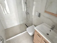 1 baño moderno con ducha y un aseo adicional