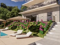 A view of the city opens up from the windows. There are: air conditioning, a barbecue area. Extras included with the property: parking space, garden. The property boasts a swimming pool of private use.