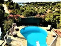 For sale 2-storey house of 218 sq.meters in Peloponnese. Ground floor consists of 2 bedrooms, living room with kitchen, one kitchen, one shower WC, 2 WC. 1st floor consists of 2 bedrooms, living room, one shower WC, one WC. A magnificent view of the sea, the forest opens up from the windows. There are: solar panels for water heating, a fireplace, air conditioning, heating, a barbecue area. Extras included with the property: parking space, garden. The property boasts a swimming pool of private use. ------------------------------------------------- Located in the prestigious area of Agios Aimilianos , just 200 meters from the sea , this beautiful two-storey villa of 218 sq.m. is built on a 700 sq.m. plot with a private swimming pool and a beautifully landscaped garden. Designed for comfort and privacy, the villa features two separate entrances , offering full independence between levels. Interior Layout Ground floor: Spacious living room with fireplace, dining area, and a fully equipped kitchen with direct access to the garden and pool area. Two bedrooms, one bathroom, and a WC complete this level. Upper floor: A second living room opening to a large terrace with views, two more bedrooms, a bathroom, and an attic suitable for storage or office use. The property includes 2 kitchens , 2 bathrooms , and 3 WCs , perfect for large families or hosting guests. Outdoor Areas The outdoor space is designed for leisure and entertainment, featuring a private pool , outdoor kitchen with BBQ area , and shaded sitting spaces surrounded by lush greenery. The east-west orientation ensures sunlight throughout the day. Additional Features Autonomous electric heating Air conditioning Solar water heater Storage room and parking space Renovated, built in 1998 Energy Class: D Only 5 km from Porto Heli , close to beaches and restaurants, and approximately 200 km from Athens International Airport . An ideal choice for those seeking a holiday home or an investment property in one of the most exclusive coastal areas of the Peloponnese.