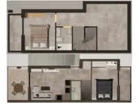 For sale: a two-level apartment of 75 m² in Nikiti, Sithonia (Halkidiki). The first level includes a living room with an open-plan kitchen, one bedroom, and a bathroom with a shower. The second level consists of two bedrooms and a bathroom with a shower. The apartment features spacious balconies with a total area of 18 m², solar water heating panels, and air conditioning units. An excellent choice for permanent residence, holidays, or rental investment.