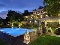 Una fantástica oportunidad para adquirir esta fantástica villa unifamiliar situada en las afueras del pueblo de Milies en la muy solicitada zona de Pelion, Thessalia, Grecia. Los edificios se construyen en 1994 con materiales de primera calidad y se adhieren plenamente al estilo y carácter tradicionales de la zona. Posibilidades sin fin como residencia permanente, un segundo hogar para vacaciones, o como una inversión lucrativa como propiedad de alquiler. Pelion es una opción popular durante el verano y los períodos de invierno. 3 dormitorios – 2 salones – 2 baños – 270 m2 Oficialmente autorizado por la Organización Nacional de Turismo de Grecia (EOT) Edificio de planta baja Cocina / comedor / sala de estar con chimenea funcional. Dos dormitorios dobles, uno con chimenea funcional y espacio para sala de estar. Baño con ducha/WC Planta alta de la casa Las escaleras conducen desde la sala de estar a las 'ondas' la tradicional sala de estar de este tipo de casa con chimenea funcional y asientos alrededor. Windows a través de dos lados completos ofrecen vistas increíbles. Dormitorio principal con chimenea funcional y baño de lujo en suite con bañera. Anexo Junto a la casa principal pero accesible a través de entrada externa, el anexe alberga una sauna y tiene el espacio ideal para un gimnasio con suficiente espacio para varios grandes equipos. Una habitación separada está actualmente en uso como lavadero, pero podría ser utilizado como espacio adicional de gimnasio o almacenamiento. Ducha/WC. El acceso al pueblo es vía kalderimi (carreteras estrechas) y está a 10 minutos a pie. Hay 3 entradas a la villa a través de la ‘kalderimi’ – una es lo suficientemente amplia para un coche muy pequeño 4 x 4 o un quad para pasar. El aparcamiento para vehículos regulares está a una distancia de 100 m (5 minutos a pie) Magnífico Chalet de 2 plantas en las afueras de Miles, Pilion • Gran terraza con increíbles vistas al mar y la montaña • parcela de 1100 metros cuadrados con edificio principal de 2 plantas 200 metros cuadrados anexo 40 metros cuadrados de almacenamiento 30 metros cuadrados • Indoor Sauna • Piscina al aire libre (50 metros cuadrados) y jacuzzi de lujo (con vistas al mar y a la montaña) • 3 dormitorios • 2 salones • 3 chimeneas de leña funcionales • Plan abierto Área de vida/Cocina • BBQ incorporado • Amplios jardines y terrazas con árboles maduros, arbustos y flores • AC en todo • Casas exteriores construidas que proporcionan buen espacio de almacenamiento seco • Vivienda para leña • Línea telefónica Milies es un pueblo montañoso en la península de Pelion y se encuentra en el distrito de Magnesia de la región de Thessaly. Se pueden encontrar varios restaurantes en y alrededor de Milies. Desde Milies se encuentra a 20 minutos en coche de la playa, a 9 km. Pelion es un verdadero destino de cuatro temporadas. Es hermoso en primavera, verano, otoño e invierno. Incontables rutas de senderismo, hermosas playas e incluso una pista de esquí adornan el paisaje.