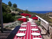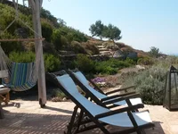 The interior unfolds across two levels and comprises a bright living area with a stone-built fireplace, a fully equipped kitchen, three comfortable bedrooms, and two bathrooms. Large openings allow natural light to flood the spaces while framing beautiful views of the sea and the surrounding hills from every angle. The villa is offered fully furnished and equipped, ready for immediate use.