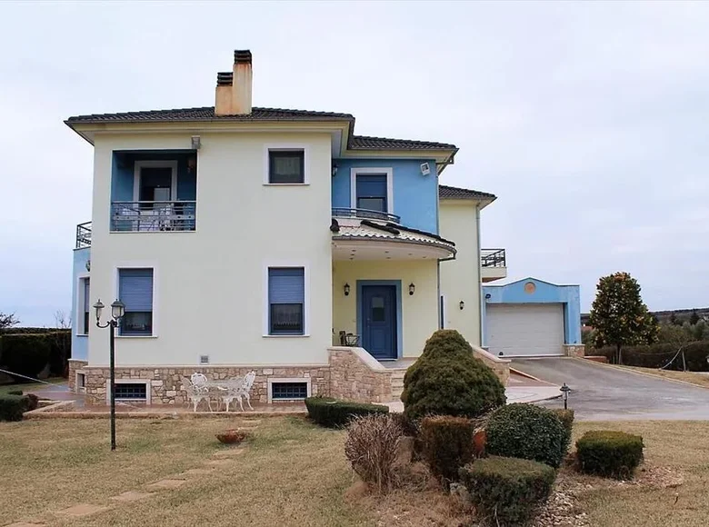 Venta villa de 3 plantas con una superficie de 433 metros cuadrados en los suburbios de Salónica. La planta baja consta de un salón, una cocina, un baño, un baño, 3 trasteros. La primera planta consta de un salón con cocina, salón, un baño, una despensa. La segunda planta consta de 5 dormitorios, 4 baños. Desde las ventanas se puede ver el mar, las montañas. La instalación tiene chimenea, aire acondicionado, calefacción. La propiedad se vende con muebles. Hay un ascensor en el edificio. La instalación tiene alarma. La propiedad incluye un jardín, garaje.