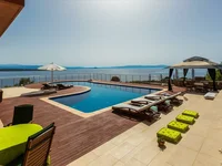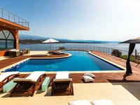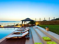 Se vende villa de lujo de 465 metros cuadrados. con una calidad de construcción de alto nivel, ubicada en la parte delantera del mar de Creta en un terreno totalmente privado de 8.500 metros cuadrados. Al ingresar a la villa en la planta baja hay un espacioso área de planta abierta de casi 200 metros cuadrados que consta de la sala de estar con chimenea, un espacio de oficina, un comedor interior y una cocina totalmente equipada con accesorios y electrodomésticos de alta calidad. La sala de estar tiene acceso directo a la terraza principal, el área de la piscina y el jardín. En la planta baja hay dos habitaciones dobles, una de ellas es una habitación abierta al lado de la sala de estar. La otra habitación doble tiene un baño privado con ducha. Una escalera al aire libre conduce a la entrada independiente del primer piso y al entrar hay un pasillo con un espacio de oficina con una biblioteca. Al lado del pasillo también hay una pequeña cocina. Dos habitaciones se encuentran en el primer piso. Uno es el dormitorio principal de 70 metros cuadrados con una cama doble king size, un área de gimnasio de planta abierta con una cinta de correr, máquina elíptica y equipo de abdominales y una pequeña sala de estar con sofá. El dormitorio principal también tiene un enorme baño en suite de 50 metros cuadrados que contiene un jacuzzi para 3 personas y una cabina de ducha. El jacuzzi ofrece una vista panorámica excepcional del mar frente a él y es un lugar perfecto para calmar el cuerpo y la mente. Esta habitación también tiene una salida a una enorme terraza amueblada y la vista al atardecer desde allí está realmente más allá de cualquier descripción. El otro dormitorio en este piso tiene 2 camas individuales con baño privado con ducha. La zona ajardinada al aire libre frente a la casa es de casi 900 metros cuadrados con una piscina de 140 metros cuadrados, zona de barbacoa, mesa de comedor con vistas a la piscina y al paisaje circundante, área con tumbonas y sofás y plaza de aparcamiento para automóviles.