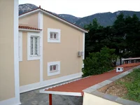 Schinos se encuentra en Corinthia, Peloponnese, a solo 1000 metros de la costa, proporcionando fácil acceso a hermosas playas. Está a 25 kilómetros del centro de Loutraki y a 79 kilómetros del aeropuerto. La zona es conocida por sus fuentes termales y rica historia, con sitios arqueológicos como el Teatro Antiguo de Epidaurus cerca. Los visitantes pueden disfrutar de actividades como senderismo, natación y explorar mercados locales.