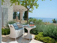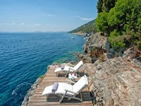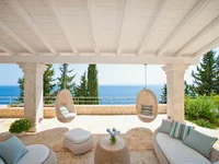 Este es un complejo de tres villas ubicadas en el pueblo de Kentroma, en la parte noreste de Corfú, aproximadamente a 25 km del centro de la isla y con una hermosa y panorámica vista al mar. Primera villa El complejo incluye una villa de 5 dormitorios de 650 metros cuadrados en total, una piscina de 100 metros cuadrados, gimnasio y SPA y la parcela de 7100 metros cuadrados.* Esta villa está prácticamente construida en la roca sobre una de las bahías más bellas de Corfú en la altura de 25 m. Durante su construcción, alrededor de las 2000 c.m. de granito fue tallado en la roca. Más tarde, esta piedra se utilizó en la decoración de las villas. * Se aplicó un diseño de paisaje particular en la configuración de la tierra de la propiedad. Hay más de 70 olivos, más de 150 cipreses, una gran cantidad de flores en la parcela. Se utiliza un sistema de riego automático, los árboles están iluminados. Los senderos que conducen al mar y las terrazas están hechos de piedra natural. Hay dos formas de dar acceso al mar con todos los escalones hechos de piedra sólida hecha a mano ( se usaron más de 5000 toneladas de piedra trabajada a mano ). * El camino hacia el mar conduce a dos terrazas de madera de teca con escalera al agua. Están equipadas con plataforma de natación, anillos de amarre, suministro de agua y electricidad para atracar yates. La profundidad del mar es de 4 m, a una distancia de 100 m de la costa, unos 18-20 m, que permite anclar yates de casi cualquier tamaño. * Una antigua capilla construida como un santo griego está en las rocas junto al agua que es un hito histórico; así, este lugar se considera sagrado. Esta villa de 650 metros cuadrados incluye un estudio contiguo de 2 pisos de 55 metros cuadrados, un garaje para 2 autos, una gran cantidad de terrazas interiores y exteriores ( más de 300 metros cuadrados ), Una piscina infinita de 100 metros cuadrados con un bar en el acantilado. Hay una escalera de piedra principal que conduce a la entrada principal, así como un ascensor moderno. La villa cuenta con: sala de estar, comedor, cocina, estudio, 4 dormitorios con baños, 3 de los cuales tienen acceso a amplias terrazas; y un estudio de invitados con un dormitorio, una cocina, comedores y salas de estar. También hay una sala de cine, un gimnasio moderno, un baño de vapor. La villa está amueblada con muebles italianos y está equipada con modernos sistemas de calefacción de bajo consumo ( calefacción por suelo radiante ) y aire acondicionado, tiene 2 depósitos para suministro de agua dulce de 200 metros cúbicos. Villa 2d Una villa de 3 dormitorios de 250 metros cuadrados en la parcela de 2700 metros cuadrados y una piscina de 40 metros cuadrados. Está construida de piedra natural y en el estilo de la casa antigua, 40 m sobre el nivel del mar e incluye una cocina-comedor, una sala de estar, 2 dormitorios con baños, un aseo de invitados, un estudio separado para huéspedes ( una cocina, un comedor, una sala de estar, un dormitorio y un baño ). Además, hay 200 metros cuadrados de terrazas y una piscina infinita con jacuzzi. Cuenta con características similares de espacios al aire libre que la primera villa. Villa 3d Una casa de huéspedes de 2 dormitorios de 75 metros cuadrados ubicada en la parcela de 2000 metros cuadrados con una piscina de 25 metros cuadrados. Está construida a una altitud de 60 m sobre el nivel del mar, a 100 m del mar. Incluye una sala de estar con cocina-comedor, 2 dormitorios con baños, 2 trasteros y un número suficiente de terrazas de 70 metros cuadrados en total. La villa está equipada con aire acondicionado y calefacción ( calefacción por suelo radiante ). Un terreno Un terreno adicional de 6500 metros cuadrados con un permiso de construcción para una villa de 6 dormitorios de 500 metros cuadrados.