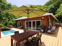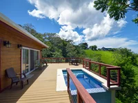 La residencia principal cuenta con 3 amplios dormitorios, 2 baños bien equipados y una piscina privada, ideal para relajarse en su propio oasis tropical. Vivir en interiores sin costuras es posible con puertas correderas expansivas que se abren para aprovechar plenamente las impresionantes vistas al mar y el entorno natural.