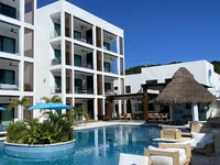 Discover luxurious beachside living at Acqua di Mare Resort. Ideally located steps from the world-renouned West Bay Beach. Surrounded by pristine shores, vibrant restaurants, and entertainment. This exclusive top-floor residence offers the perfect blend of luxury, location and lifestyle. A thoughtfully designed open-concept living space featuring a spacious living room and a gormet kitchen with quartz counter tops, a large island w/bar seating. Chic lighting fixtures to curated decor, enhances the ambiance of refined coastal living. Private balcony with peek-a-boo ocean view and serene outlook over the resort pool and outdoor dining area. Whether you're seeking a permanent residence, vacation home, or investment property. This condo is located in one of Roatan's most desirable locations.