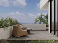 Villa con una hermosa vista panorámica de los bosques verdes y el océano.