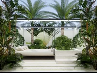 Infraestructura del complejo: rufttop en la cuarta planta con vistas al mar y las terrazas de arroz, gran piscina Infiniti, restaurante, coworking, gimnasio