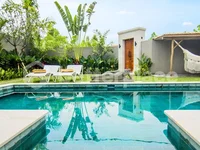 La cocina totalmente amueblada, completa con una mesa de cocina y sillas, ofrece un lugar conveniente para disfrutar de comidas caseras. La sala de estar hundida de la villa es el retiro final del ritmo agitado de la vida cotidiana, proporcionando un ambiente acogedor y cómodo para relajarse. Construido con bambú, conocido por su fuerza y estabilidad naturales, esta villa también cuenta con aire acondicionado para garantizar la comodidad en el clima impredecible de Bali.