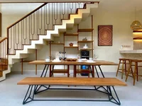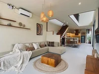 Situado en 156 m2 de tierra con 143 m2 de edificación sobre dos niveles, la villa da una fuerte impresión desde el principio. La puerta de madera curvada, las ventanas arqueadas y la piedra son equilibradas por interiores limpios, un diseño práctico y acabados naturales en todas partes. En su interior se encuentra un salón cerrado y comedor con techos de doble altura, una cocina completa y una piscina privada compacta (aprox. 4 x 3 m) enmarcada por puertas correderas de vidrio. Ambos dormitorios están arriba con baños en suite y duchas de lluvia, y la orientación norte-facing trae en constante luz del día. Completamente amueblado y listo para moverse, la casa incluye agua PDAM, aparcamiento, una pavimentada carretera de acceso de 4 metros, y un permiso de villa adecuado.