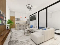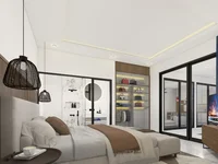 Sitting on 167 sqm of land with a generous 208.2 sqm of built space, the villa offers two stylish bedrooms, one on the ground floor opening directly to the pool, and one upstairs with its own lounge balcony and pool views. The enclosed living and dining area is paired with a sleek western kitchen, while floor-to-ceiling glass brings in natural light throughout. The villa features two bathrooms, a private pool, ground-floor poolside lounge, and parking for one car.