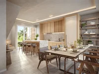 Campo de arroz sin estructura Vistas: Disfrute de vistas panorámicas al campo de arroz desde ambos pisos a través de vidrio templado de altura completa – un factor clave que aumenta el valor de alquiler. Situado entre zonas amarillas (compilables) y verdes (protegidas) garantizando que ninguna construcción futura obstruya la vista