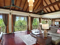 Originally built in 2010, the villa has been meticulously maintained and is fully furnished, featuring four bedrooms and five bathrooms equipped with quality amenities like bathtubs, double sinks, water heaters, and stylish shower units. The open-concept living, dining, and western-standard kitchen area flow seamlessly together under high ceilings, offering an ideal setting for both everyday comfort and elegant entertaining. The villa’s architectural layout enhances its indoor-outdoor appeal, drawing in light and tropical breezes.