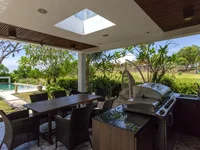 Cuenta con 5 suites + 1 dormitorio, una cocina totalmente equipada de estilo occidental, piscina privada en medio de jardines tropicales, y espaciosas zonas de estar y comedor de lujo, la propiedad también disfruta de vistas pintorescas sobre el campo de golf y aguas turquesas del Océano Índico.