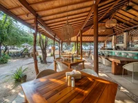 Constructed in 2013, the resort was recently renovated and includes a beachfront swimming pool and a large beachfront restaurant and bar. Additionally it with its own staff buildings and storage buildings, as well as its own solar panel system and fully equipped kitchen.