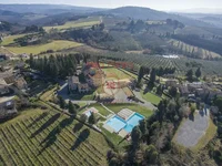 В зеленых живописных окрестностях классического Кьянти выставлена на продажу роскошная вилла, окруженная виноградниками и оливковыми рощами. Сооружение относится к восемнадцатому веку; элитное имение расположена на панорамном месторасположении, позволяющем любоваться незабываемыми пейзажами Тосканы, в которые гармонично вписываются изысканные рестораны традиционной кухни и красивейшие отели класса люкс. Великолепная резиденция состоит из главного трехэтажного здания, расположенного в центре сада и украшенного двумя очаровательными башенками. Внутренние помещения виллы отделаны материалами самого высокого качества, оснащены всеми условиями современного и отличаются элегантностью и семейным уютом. В престижный комплекс входит также второе сооружение из двух этажей, а также погреба, площадка для вертолета, двадцать пять автомобильных мест и три бассейна. Общая площадь внутренних помещений сказочного имения составляет 3 507 кв. м. Территория виллы занимает 9 гектаров, из которых 1,2 отведены под парк, 7,6 под оливковые рощи и 9 000 под участок под застройку. Имеется также готовый проект по расширению виллы, предполагающий сооружение дополнительных построек, спа-зоны и отельных структур различного типа. Дополнительные услуги компании: - Проверка юридической чистоты - Юридическое сопровождение сделки с гарантией получения всех документов о праве собственности - Поездки: Бронирование авиа-билетов по минимальной цене - Пост-продажный сервис – решение любых вопросов по обслуживанию недвижимости LD-1971