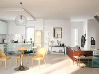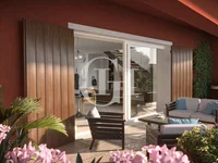 On the top floor of a small context of 6 units served by a lift, the flat is on two levels with a large and bright living room with a living terrace of about 25 square metres, a bedroom and a bathroom on the second floor and three huge double bedrooms, a study, a large bathroom and a storage room on the attic floor embellished by white exposed beams.