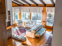 You can access the home through a welcoming door that opens into a large lounge with a fireplace and large windows that illuminate the room and connect it with the terrace from which you can enjoy an enchanting panorama.