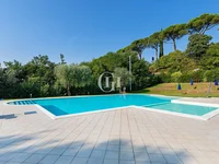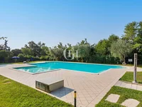In an elegant context with swimming pool and wide green spaces, two-roomed apartment on the ground floor with private garden composed as follows: entrance, living room with kitchenette, hallway, large double bedroom and bathroom.