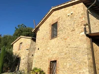 The property is an ancient farmhouse dating back to the 1400s immersed in 10 hectares of land and surrounded by lush vegetation consisting of holm oaks, chestnut trees, olive trees and centuries-old oaks.