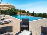 Ofrecemos a la venta una villa de 230 metros cuadrados con elegantes muebles modernos y acabados lujosos, con un jardín y una gran piscina con vistas panorámicas al mar, situada en una zona tranquila y aislada en las colinas de Bordiguera, a pocos kilómetros del centro y cerca de la salida de la autopista en Monte Carlo y Aeropuerto de Niza.