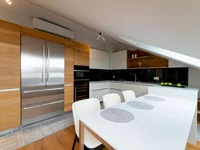 Ofrecemos a la venta un nuevo elegante apartamento de 3 habitaciones en el ático en un edificio renovado en el centro de Riga. Proyecto Elizabetes Rezidence – es una de las perlas más brillantes del patrimonio arquitectónico de Riga. El edificio fue construido a finales del siglo pasado y completamente renovado en 2017. Durante la renovación se realizó una labor muy extensa y de alta calidad, todas las comunicaciones fueron reemplazadas, pero se conservaron elementos históricos. Un luminoso y amplio apartamento consta de: un salón que se combina parcialmente con una cocina, dos dormitorios, dos baños con suelos cálidos y un hall de entrada. El apartamento tiene una chimenea, techos altos, claraboyas con vistas a la calle Elizabeth y al patio. El apartamento se ofrece con interior completo, que se fabrica según un proyecto desarrollado especialmente por el diseñador. La garantía de la calidad es el uso en la creación de diseño y superficies, tales como: joven; Sanitario de Falper, Zucchetti; Armarios y muebles – Lema, Molteni & C, Moooi, Ligne Rosset; Equipo en la cocina – Arclinea. Los apartamentos disponen de un sistema de ventilación (recuperación de aire) una función de control de calefacción y aire acondicionado. Además, el apartamento está equipado con alarmas de seguridad y fuego, así como un sistema de videovigilancia. Para la comodidad de los residentes, un concepto moderno y práctico de "Smart Home" está equipado - un sistema de automatización con el que puede controlar y controlar a distancia; Calefacción, iluminación, seguridad, ventilación, así como dispositivos de audio y vídeo.
