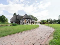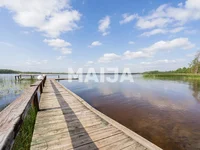 3.5 ha justo en la orilla del lago. Log house with a thatched roof;