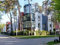 Apartamento con acabado blanco en un judío dorado en Jurmala! En un nuevo edificio cerca del mar, en la primera planta de una casa de tres plantas, hay una salida de la sala de estar a una terraza de 25 m2, terminada con tablas compuestas y vallada con tubos.