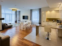 new building, all city communications, modern refurbishment, panoramic windows, fully furnished, built-in kitchen, built-in furniture, underground parking, lift, security post, concierge, near the park, near sea.
