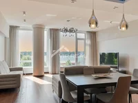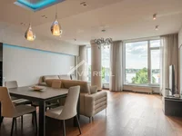 Se vende un apartamento espacioso, luminoso y acogedor en el nuevo y prestigioso proyecto moderno "Centra nams" con vistas al río Daugava. El apartamento tiene una distribución cómoda que incluye una elegante sala de estar con ventanas panorámicas, combinada con una cocina dividida en zonas, dos habitaciones independientes (un dormitorio y una oficina), un vestidor y dos baños con calefacción por suelo radiante. Para la renovación se utilizaron materiales de alta calidad. El edificio está equipado con videovigilancia, seguridad las 24 horas, los 7 días de la semana y un territorio cerrado. También existe la opción de comprar o alquilar una plaza en el aparcamiento subterráneo.
