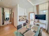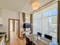 new building, all city communications, modern refurbishment, panoramic windows, fully furnished, built-in kitchen, built-in furniture, floor heating, secured area, well-kept area, underground parking, internet, satellite TV, well-developed infrastructure, fenced area, near the forest, near sea.