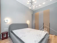 En el apartamento hizo una gran reparación de diseño. El apartamento está decorado en un estilo moderno con materiales de acabado naturales y de alta calidad.
