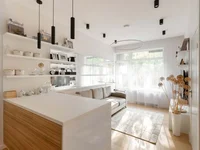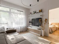 - The apartment consists of a spacious living room combined with a kitchen, a bedroom, a bathroom with a shower, a hallway and a spacious balcony.