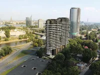 - visiones majestuosas de las ventanas panorámicas, balcones y terrazas de los pisos en el Río Daugava, la Vieja Ciudad y el alojamiento bajo verde de Kipsala