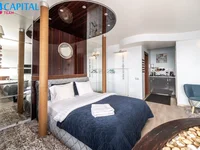 - A través de las ventanas del apartamento se abre la vista de la ciudad de Vilnius;