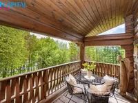 Dentro - amplio hall frontal con una cómoda entrada a una terraza al aire libre, donde es agradable relajarse después de la sauna o pasar la noche en aire fresco. La iluminación exterior instalada crea un ambiente acogedor en las noches.