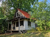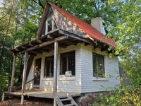• En el lado izquierdo de la casa, bajo la nueva cubierta de techo modificada, hay un extraño techo y tablas de piso en el sitio;