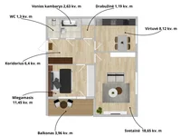 ¿Busca vivienda cómoda y funcional en una zona renovable? Este apartamento es una opción perfecta tanto para la vida como para la inversión. El apartamento está en una zona tranquila, verde, cerca del lago y el parque Jomantas - combinación perfecta para aquellos que quieren vivir en la ciudad, pero también disfrutar de la proximidad de la naturaleza.